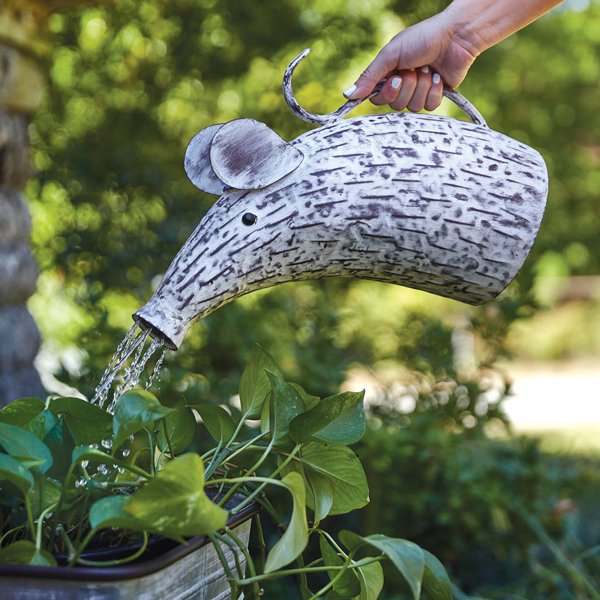 Step into a world of enchantment with our Mouse Watering Can, where utility meets adorable design. Whether you have a lush backyard or a cozy apartment filled with potted plants, this Mouse Watering Can will make watering your green companions a joyous experience. This item is crafted from metal, is watertight, and features a plastic stopper.