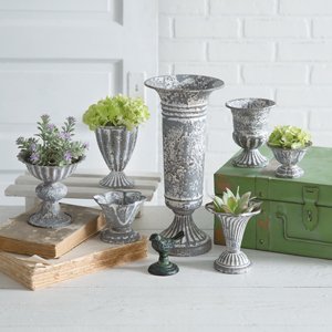 Ideal for a succulent, jewelry, or a tealight, our small petunia cup is a lovely addition to a tabletop and can be practical and handy. Item is made of metal with a distressed finish.