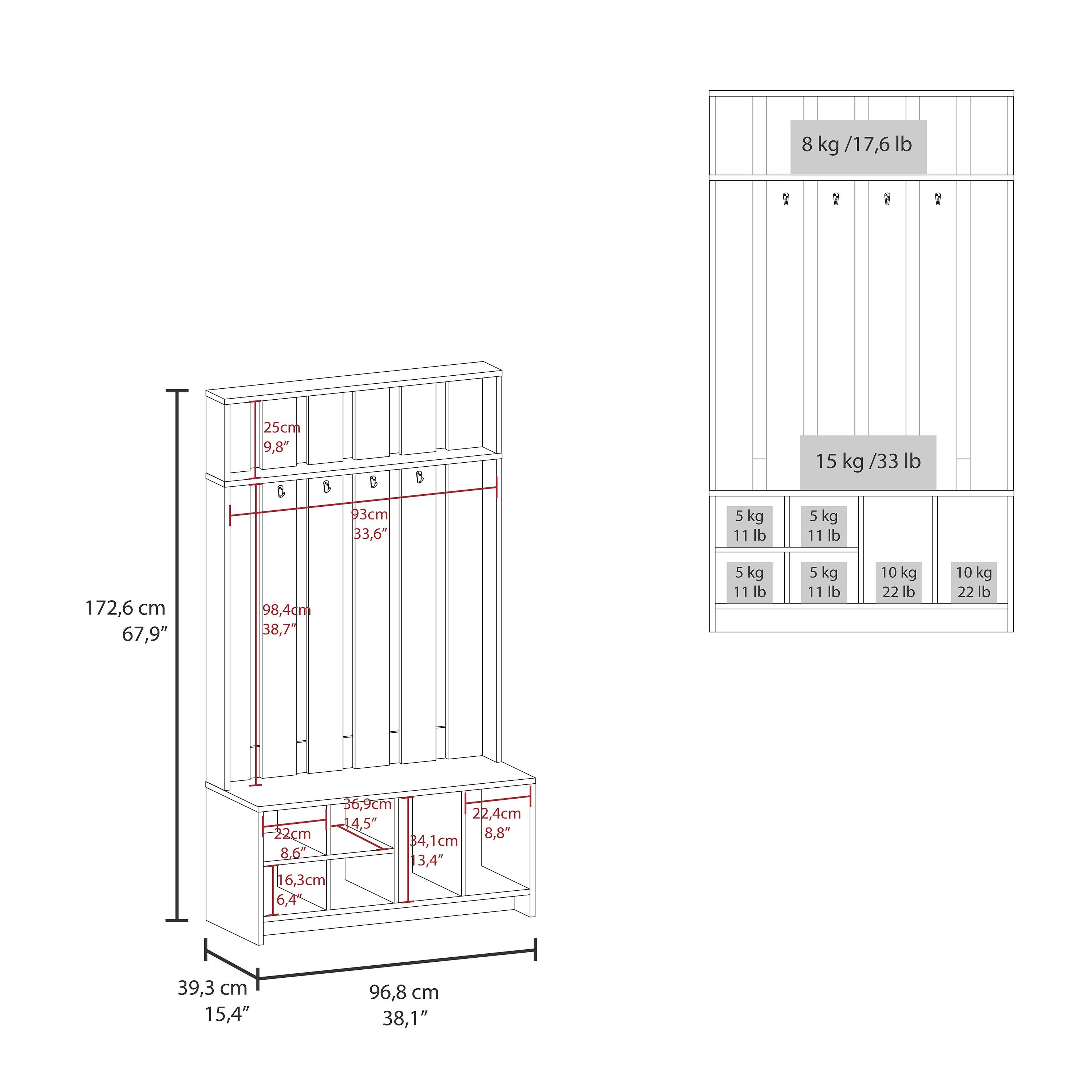 Tulcan 38" Wide Hall Tree with Bench and Shoe Storage, Entryway Bench with Coat Rack Tulcan 38" Wide Hall Tree with Bench and Shoe Storage, Entryway Bench with Coat Rack Tulcan 38" Wide Hall Tree with Bench and Shoe Storage, Entryway Bench with Coat Rack