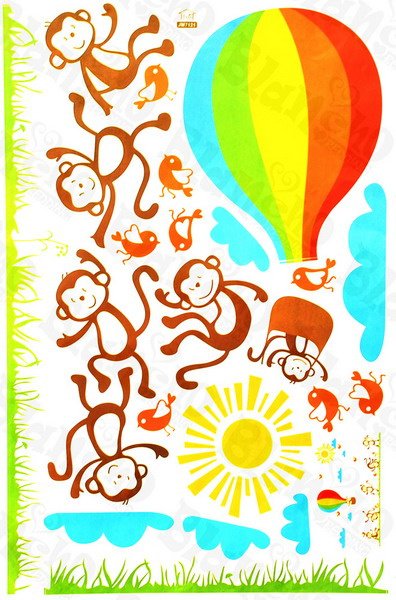 Monkey And Hot Balloon - Wall Decals Stickers Appliques Home Dcor Monkey And Hot Balloon - Wall Decals Stickers Appliques Home Dcor