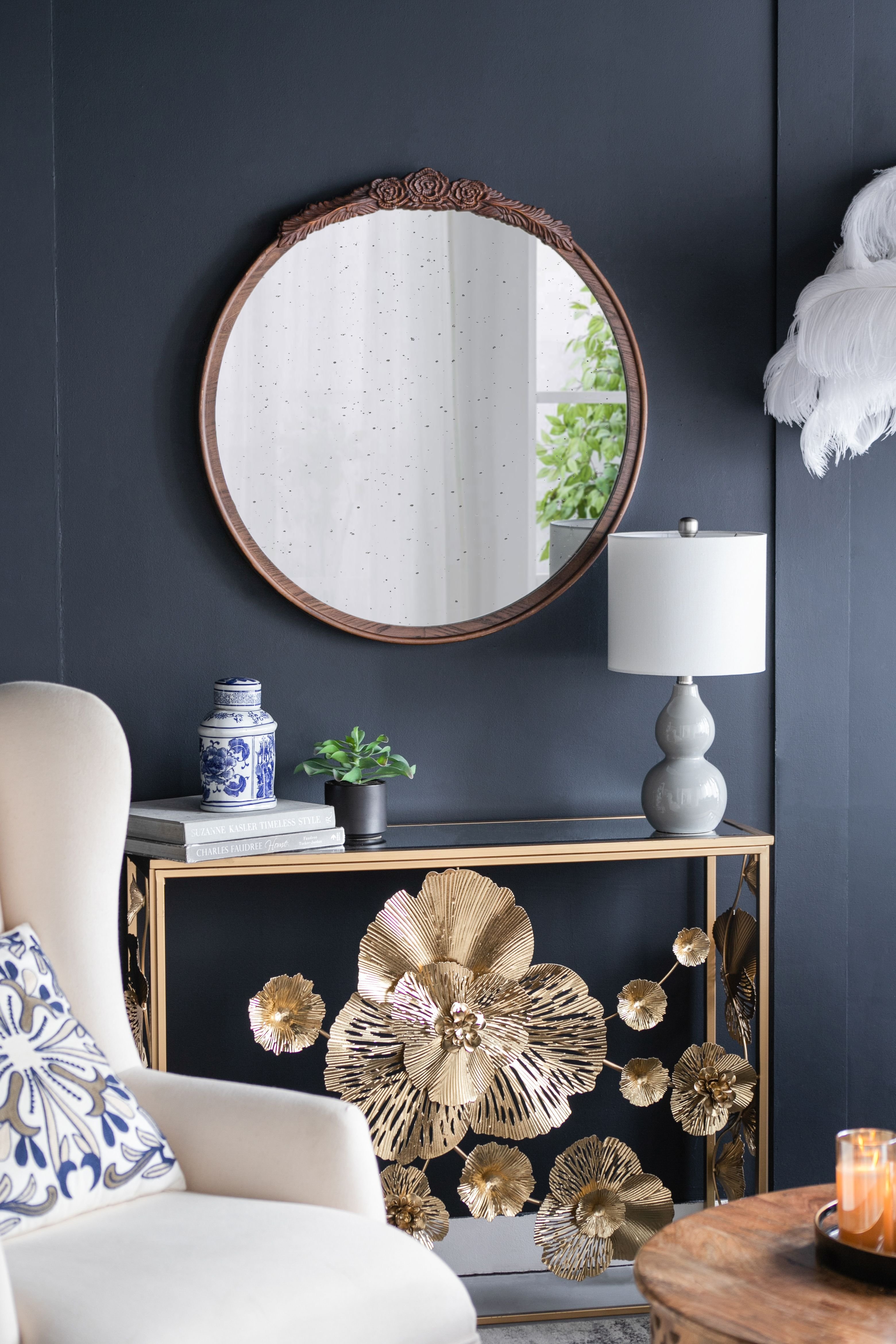 30"x30" Round Hand Carved Rose Antique Mirror Frame, Wall Mirror for Live space, Bathroom, Entryway Wall Décor(Brown) 30"x30" Round Hand Carved Rose Antique Mirror Frame, Wall Mirror for Live space, Bathroom, Entryway Wall Décor(Brown) 30"x30" Round Hand Carved Rose Antique Mirror Frame, Wall Mirror for Live space, Bathroom, Entryway Wall Décor(Brown)