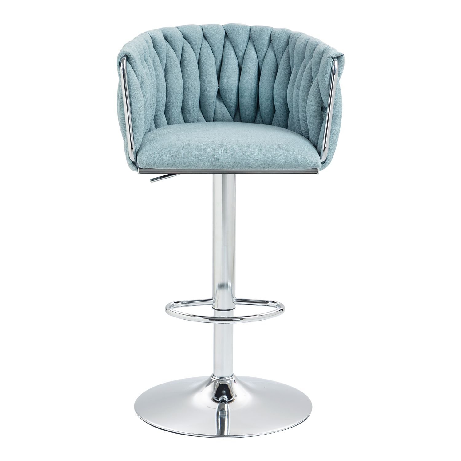 The bar stool is made of sliver metal and fabric, woven to create a very eye-catching design. Perfect for restaurants, kitchens, cafes, offices, bars, exhibitions, or any other decor theme, it fits your space and your home more seamlessly so you can create a fun and original atmosphere.