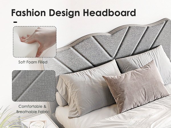 Minimalist & Noise-Free: This queen-size bed frame features a sleek, padded upholstered headboard that complements a variety of decor styles. Equipped with EVA mute bars, it effectively eliminates friction noise, ensuring a completely silent and creak-free sleeping experience. Perfect for those who value both style and tranquility