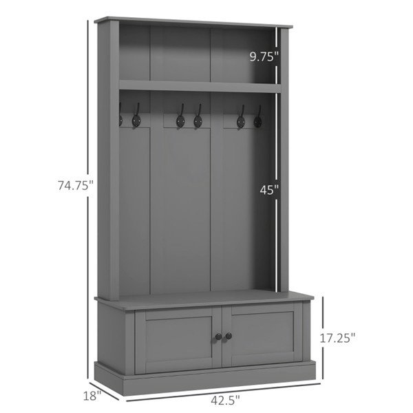 Storage Cabinet Hall Tree Entryway Bench with Coat Rack, Gray-AS