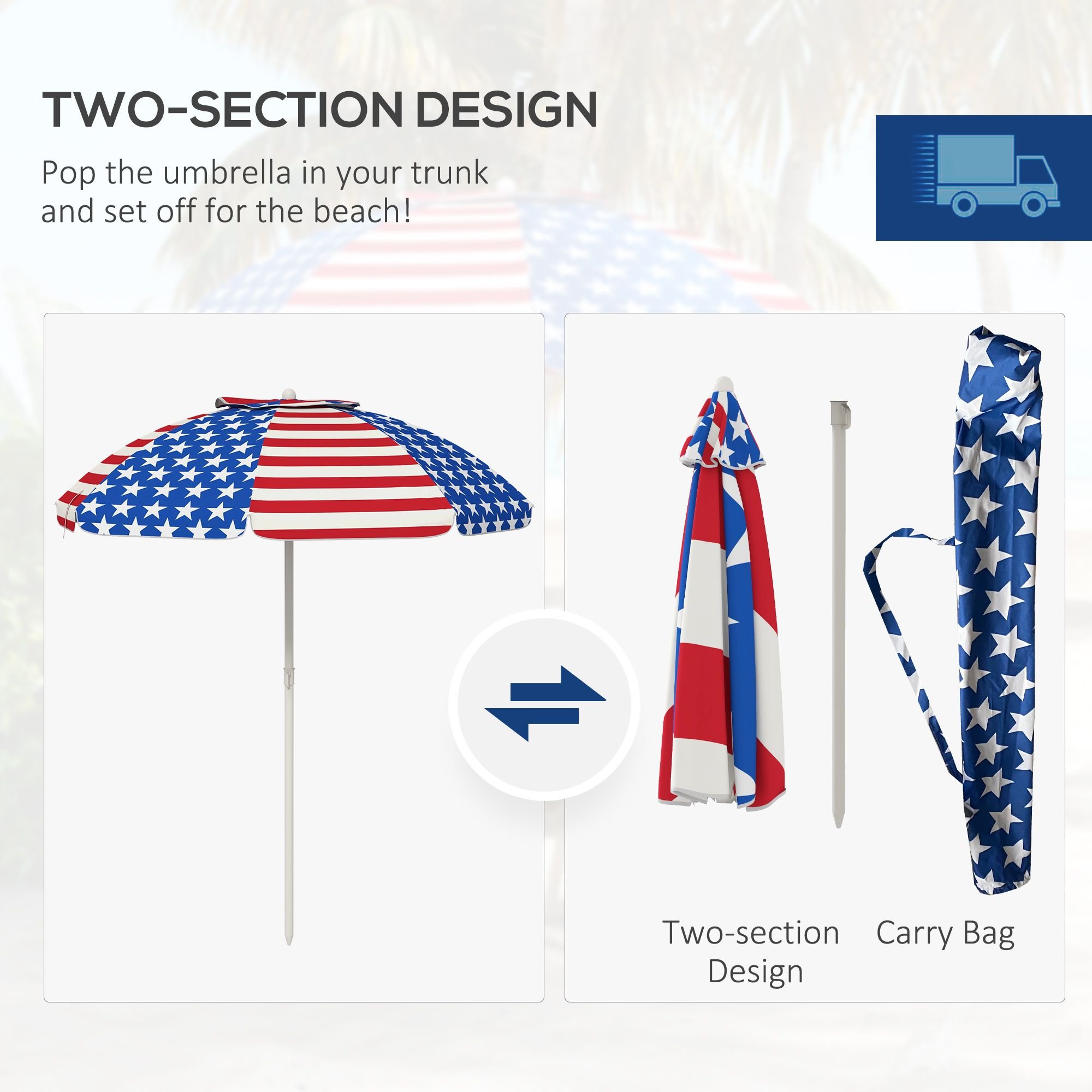 5.7' Beach Umbrella for Travel with Tilt, Vent, Flounce, Portable Outdoor Umbrella, American National Flag Pattern