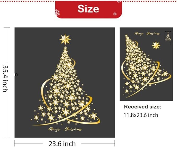★ Size- 23.6x35.4in,Please refer to our size picture carefully.★ Materials: High quality PVC Static Stickers, Environment-friendly, Non-toxic , Non-fading, Waterproof, also safe for children, kids.★ Reusable - These Static window stickers are reusable so you can reuse them in the next Christmas season! Just remember to save the support they came up and store them in a cool place.★ Where to use it?-These are great for home windows, glass storm doors, mirrors or any other smooth surface.We do not recommend using them in car windows as the heat may cause them to shrunk or peel.★ Instructions- 1. Clean the place where you want to paste; 2. Spray a little water on the surface; 3. Remove the sticker from the backing paper and attach it on the smooth surface, and then adjust it to the right position; 4. Push the bubbles and blisters in the sticker with a card;5.Use a clean cloth to blot the blisters on the edge of the sticker.