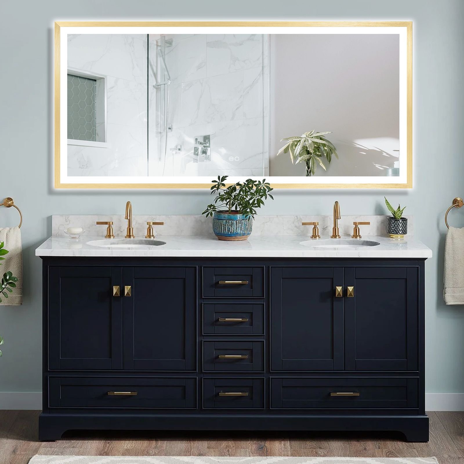 4 Size LED Bathroom Mirror; Backlit and Front Lighted Mirror for Bathroom; Wall Mounted Bathroom Vanity Framed Mirror Includes Dimmer; ; Defogger;