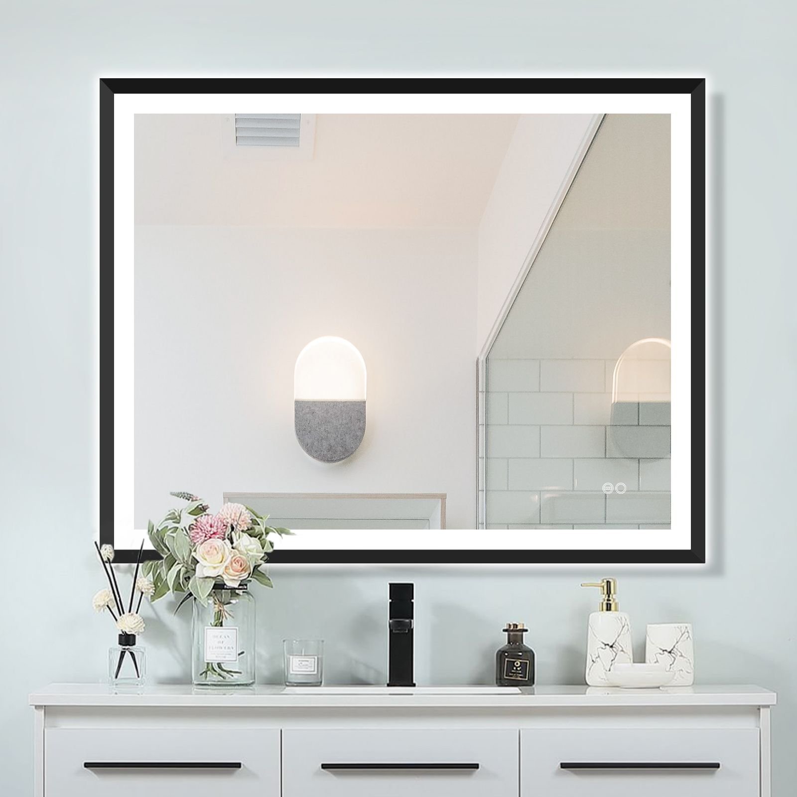 Home > 4 Size LED Bathroom Mirror; Backlit and Front Lighted Mirror for Bathroom; Wall Mounted Bathroom Vanity Framed Mirror Includes Dimmer; ; Defogger;