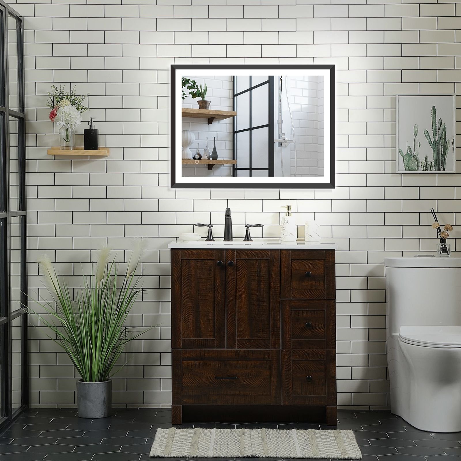 4 Size LED Bathroom Mirror; Backlit and Front Lighted Mirror for Bathroom; Wall Mounted Bathroom Vanity Framed Mirror Includes Dimmer; ; Defogger;
