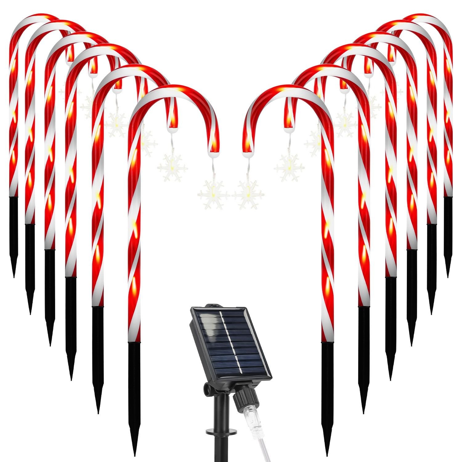 * Best Christmas Outdoor Decorations*: This 8 Modes Christmas Candy Cane Light with 12 Candies with adorable hanging Santas/snowflakes decor is and ideal decorations in Christmas to create a lively, romantic and fantastic atmosphere after inserting them in your backyard, front door, garden, making this holiday season unforgettable! It's also a perfect present gift for your parents,friends,or your neighbor.