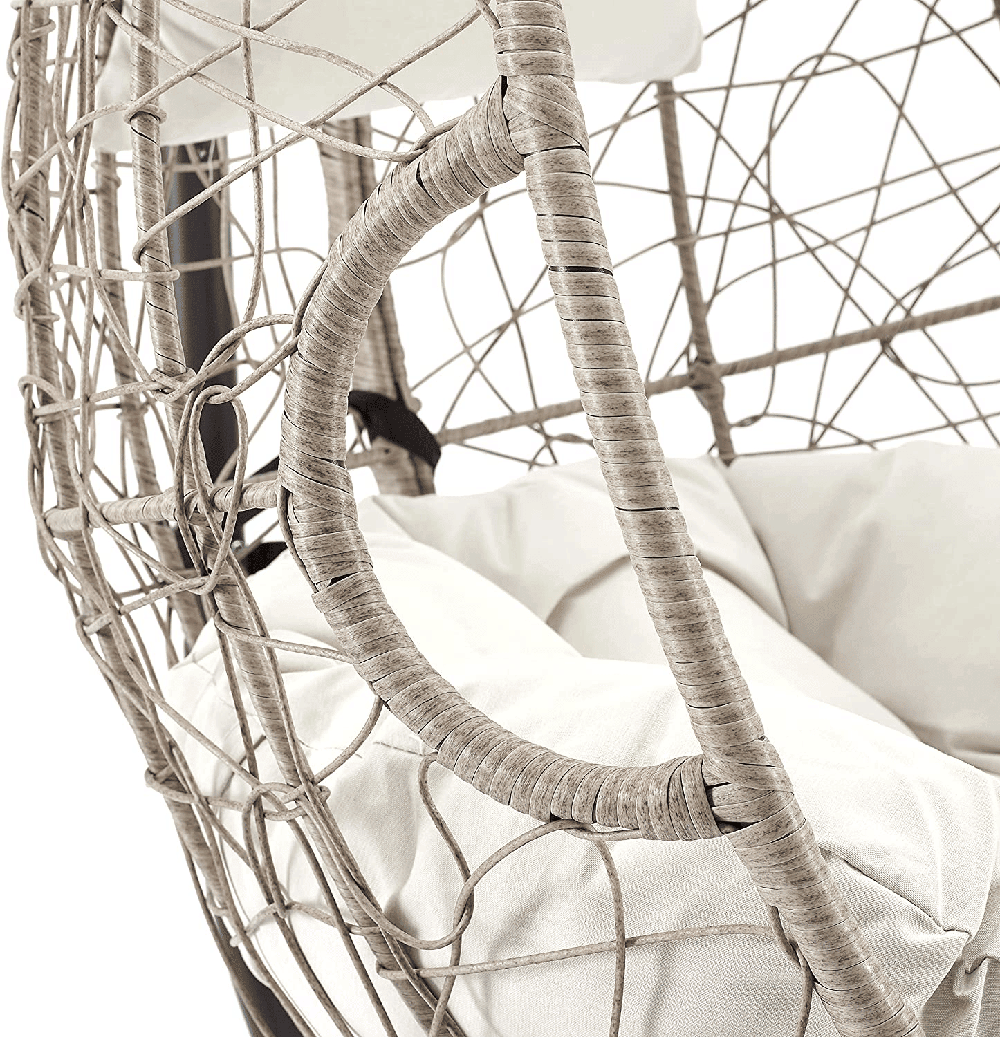 2.High Quality Material: The stylish beige wicker hanging basket chairs crafted with strong steel frame wrapped in handwoven premium PE wicker, waterproof and built to last, easy to maintenance. It will be an ideal modern accessory for your outdoor space.